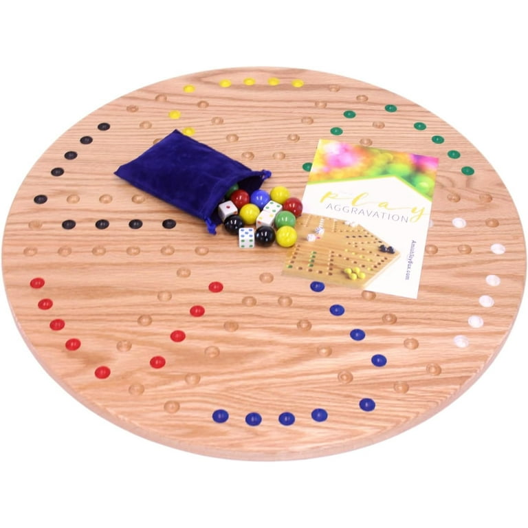 Amishtoybox Com Wahoo Marble Game Board Set Round 22 Wide Marbles Game Solid Oak Wood Double Sided With Large 22mm Marbles And Dice Included Walmart Com
